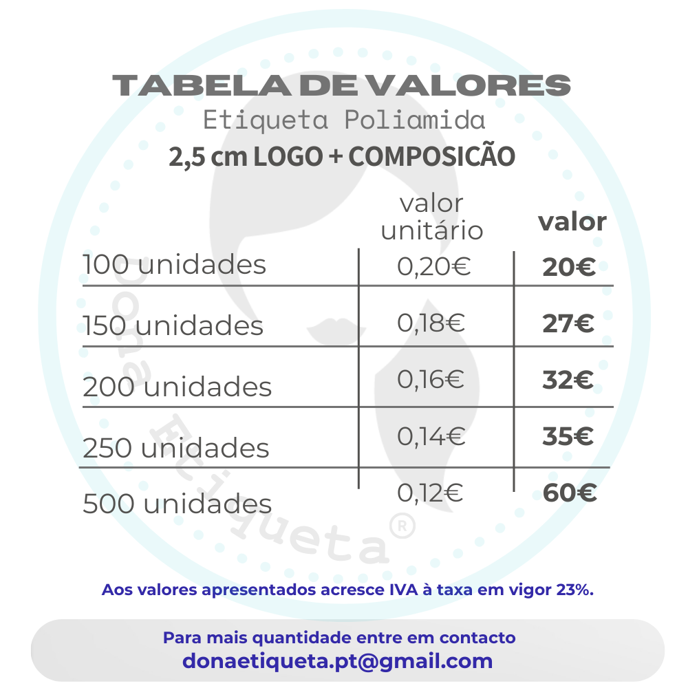 Etiquetas Poliamida | 2,5 cm Largura | Etiquetas composição com LOGOTIPO