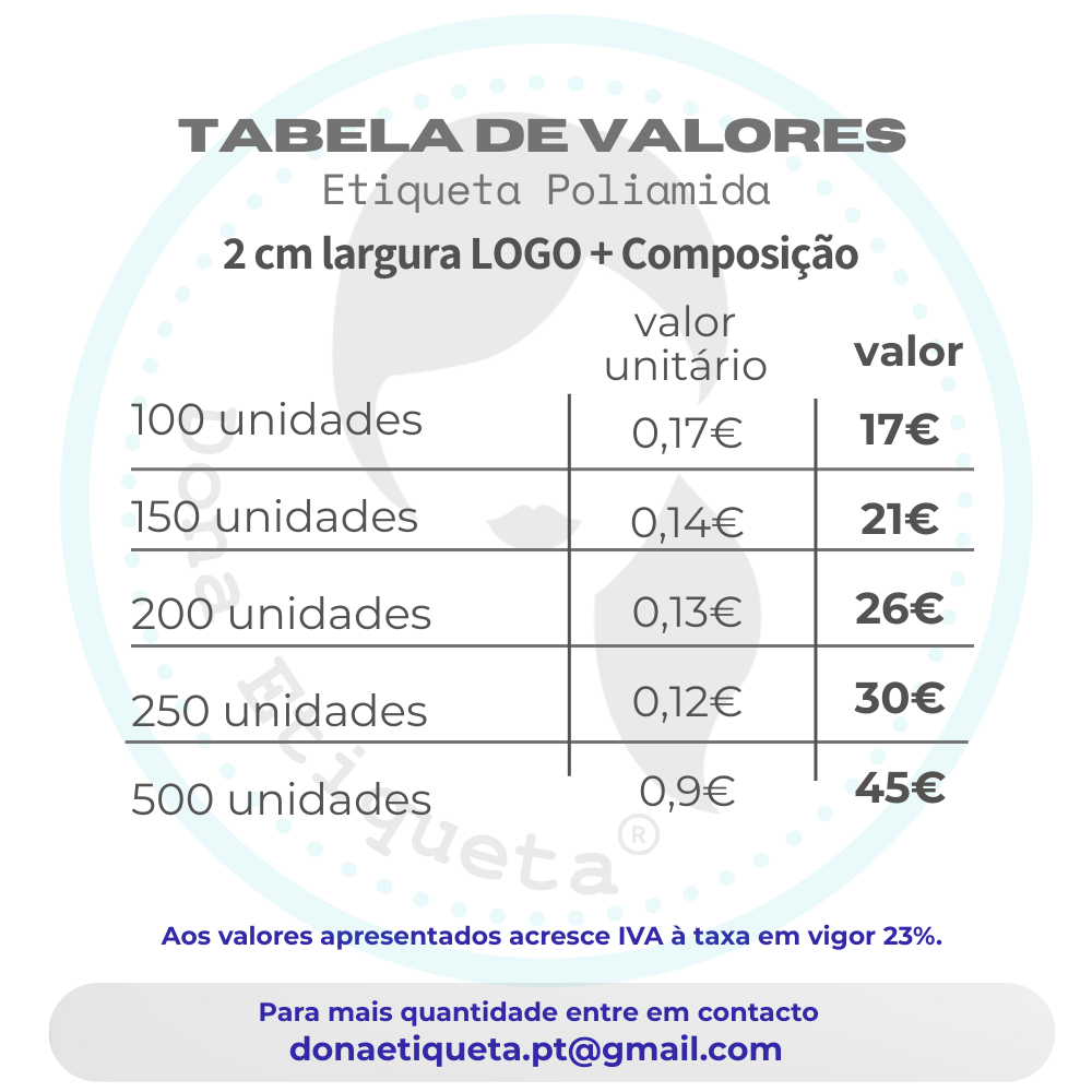 Etiquetas Poliamida | 2 cm Largura | Etiquetas de composição com LOGOTIPO