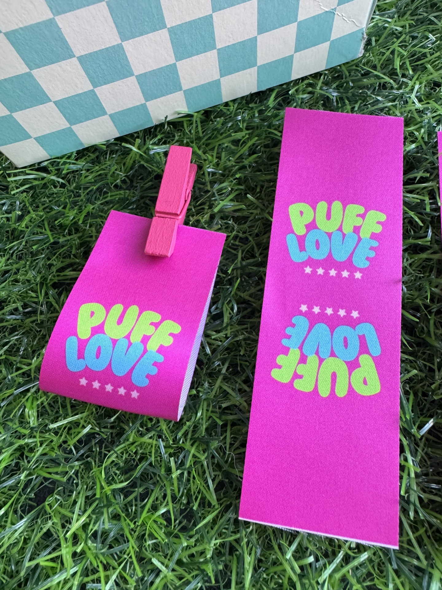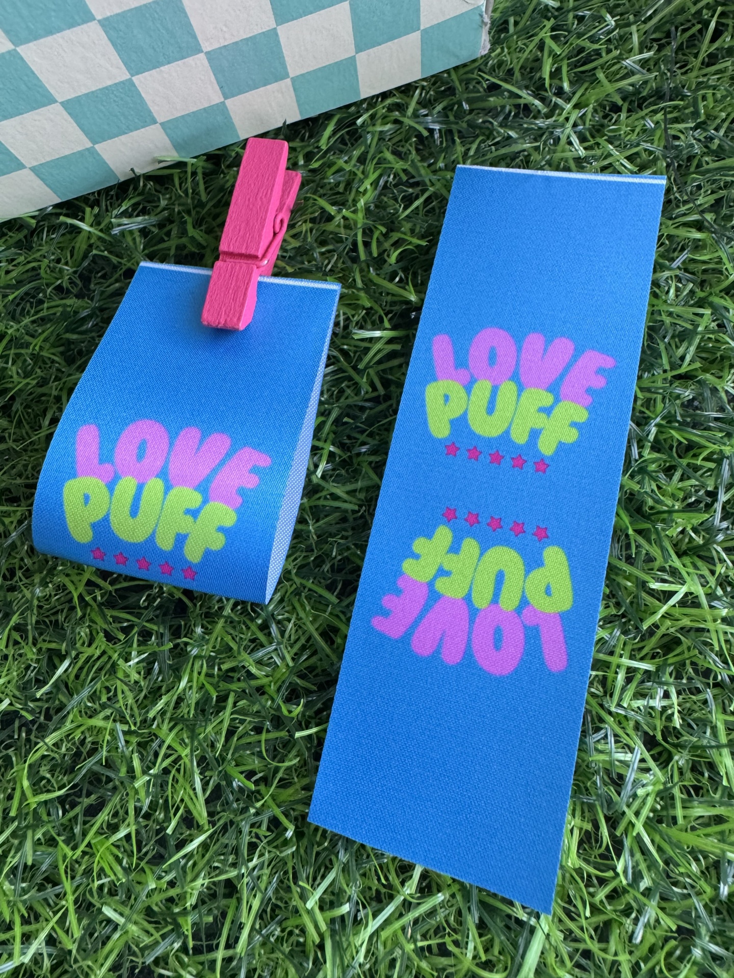 Dimensões: Comprimento variável de cada etiqueta até 8 cm, (já incluindo a margem de costura). Se necessita de etiquetas maiores por favor entre em contacto para ajuste de orçamento.