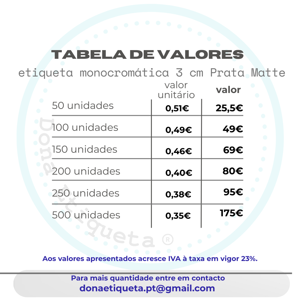 A impressão em prateado matte oferece um acabamento luxuoso e contemporâneo, sem o brilho excessivo do pratateado tradicional. Perfeito para marcas que buscam transmitir exclusividade e bom gosto em cada detalhe.