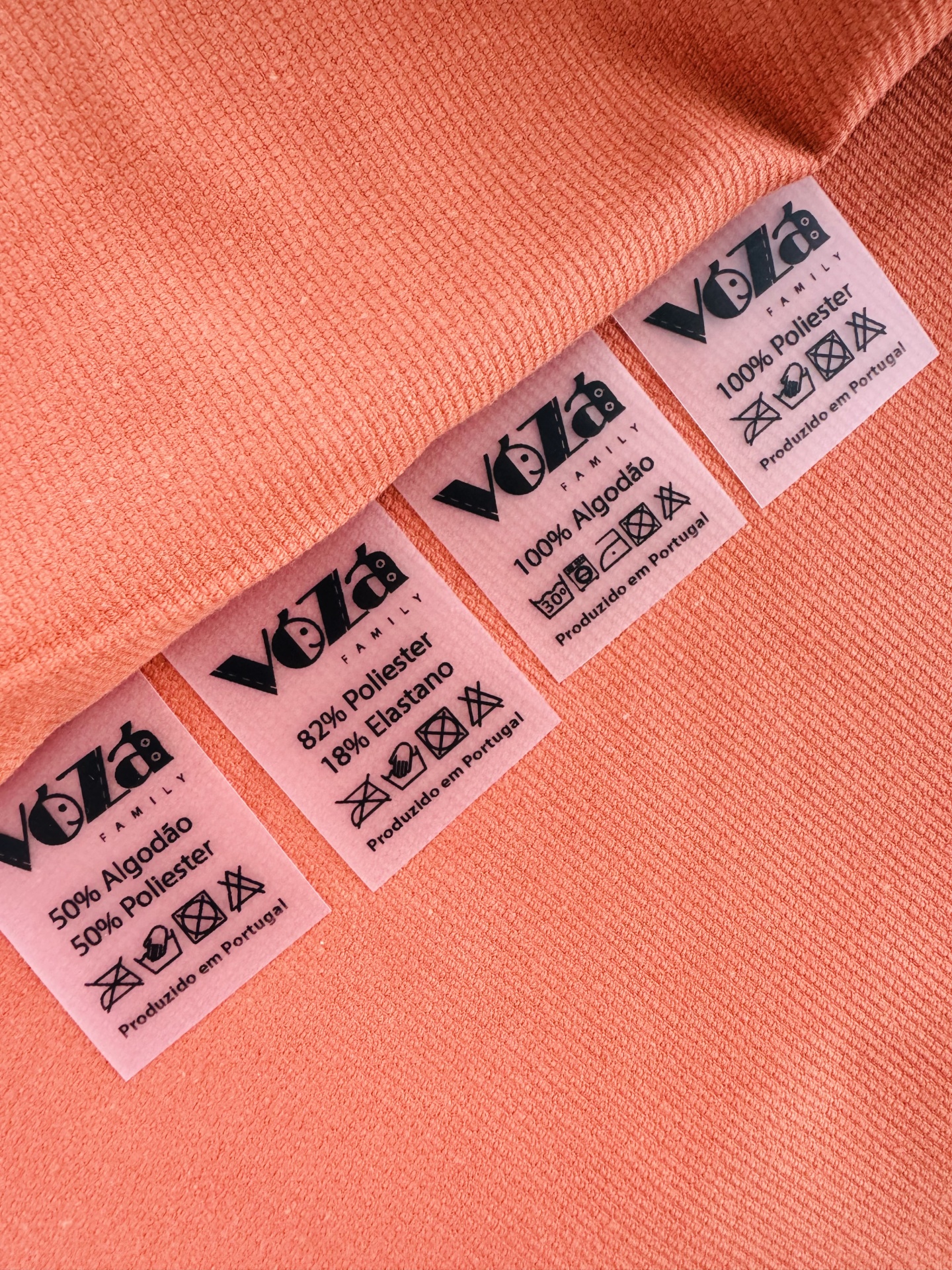 Somente etiquetas planas. Logo + valor de costura, máximo de etiqueta não pode exeder os 5 cm. Vertical ou horizontamente.