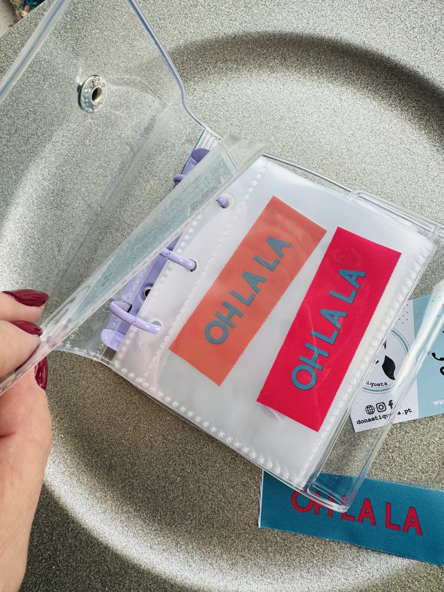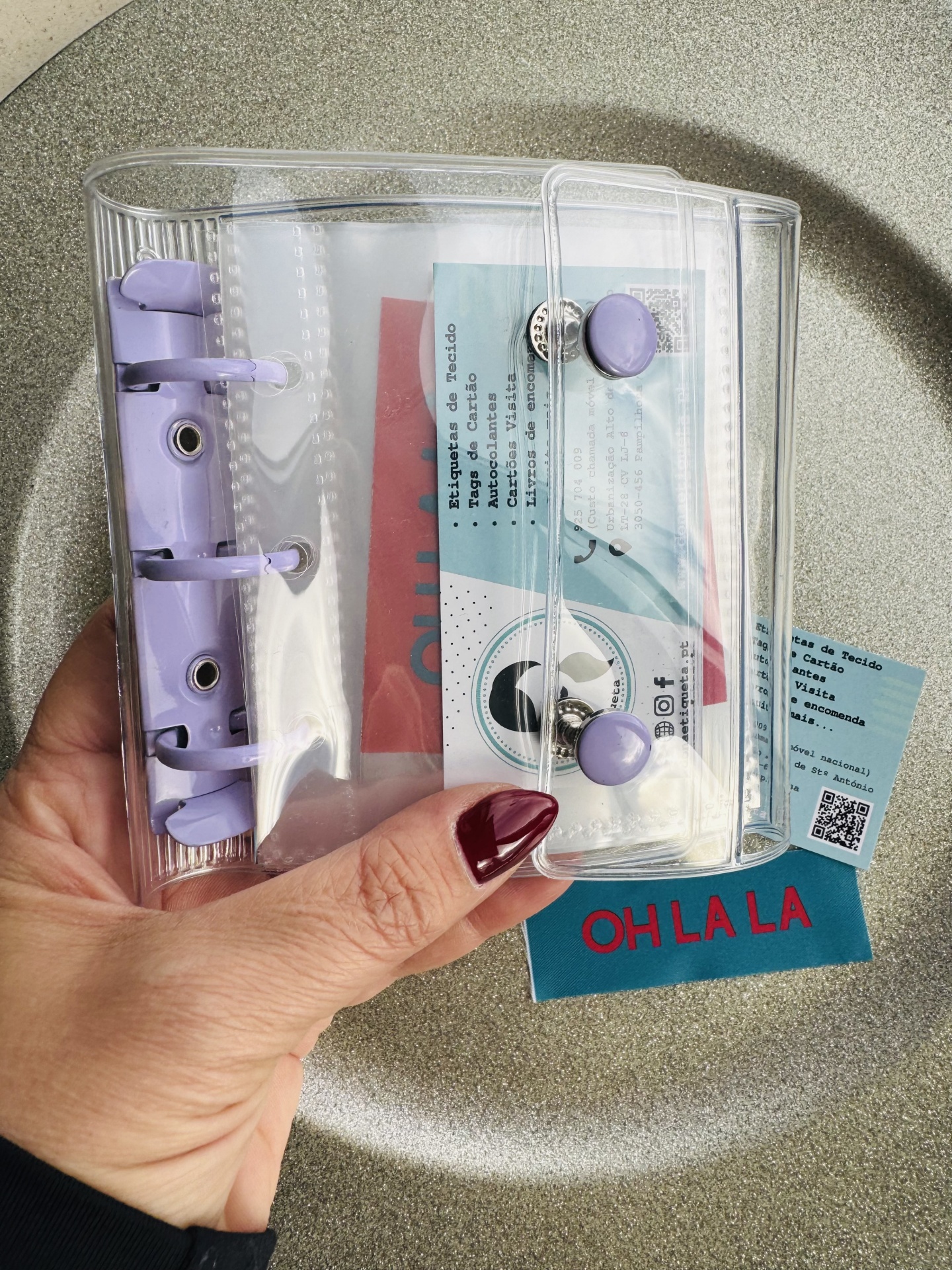 A mini capa é feita de plástico PVC flexível e transparente, permitindo que o conteúdo interno seja visualizado.