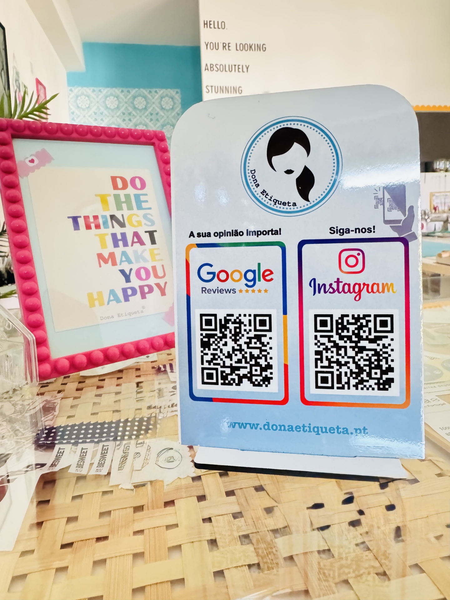 Deixe o link para a sua página de reviews do google e do instagram, nós criamos o qr code para si.